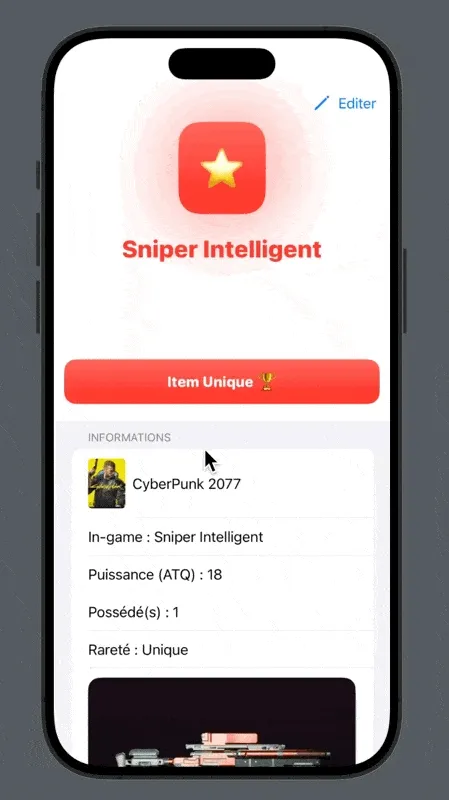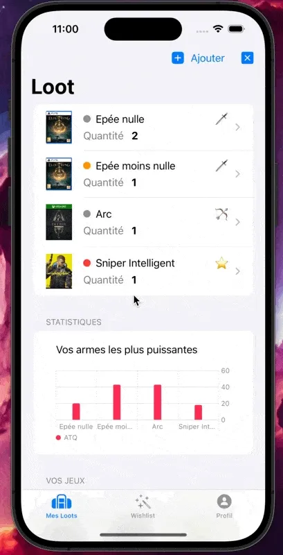 Votre page d’accueil avec la liste des loots de votre inventaire doit permettre de supprimer un loot en glissant vers la gauche, comme il est de convention sur iOS.